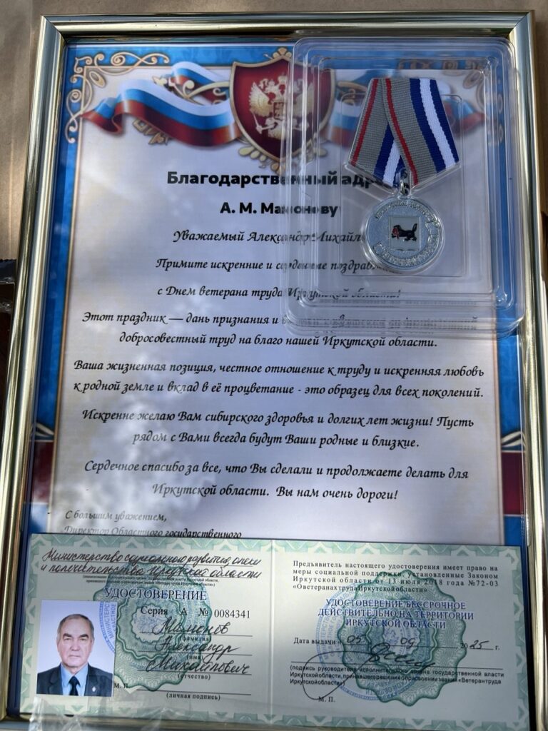 Ветеран труда Иркутской области – Мамонов Александр Михайлович!
